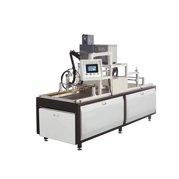 - FB-480,是我公司獨(dú)立研發(fā),國(guó)內(nèi)外首創(chuàng),本機(jī)最大優(yōu)點(diǎn)是操作簡(jiǎn)單,速度快,噴槍固定,圍框自動(dòng)定位,皮帶輸送不停機(jī)噴膠原理,有效解決了天地蓋組裝機(jī)的速度慢和粘連性能。